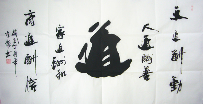 第一字画网四尺办公室书法道是四尺的书法作品,桂龙老师这幅四字书法观上善若水书法作品非常适合挂在办公室,气派非凡,装裱后尺寸达到1.8米长,如果放在画廊出售,湖北书法家郁桂龙老师办公室书房书法道的标价在1500元左右。书法精品作品众多,如精气神书法厚德载福书法等。