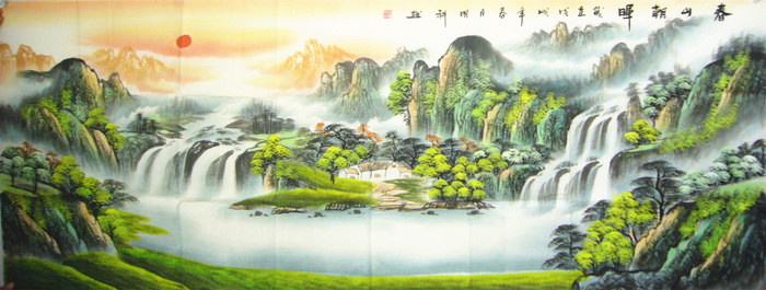 • 产品简介: 旭日东升风水画《春山朝辉》,诸葛明科老师作品。