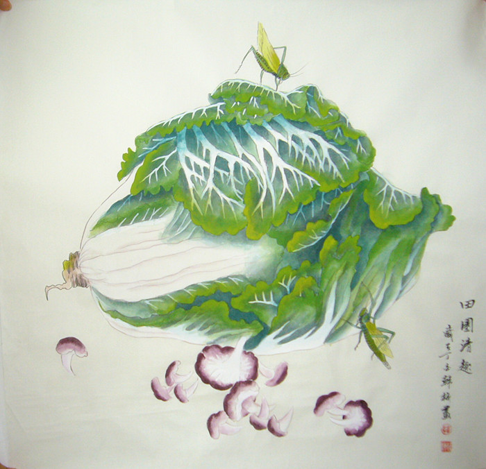 第一字画网的斗方工笔百财图 ,作品适合挂在餐厅,也可以挂书房、卧室或是玄关过道处,是一幅很有意境的斗方工笔百财图作品。四尺斗方的白菜图并不多见,画的精彩的就更少了,这幅作品从构图和层次等细节处都可以看出是一幅用心精彩之作,寓意日日生财,如果放在画廊出售,韩梅老师此幅斗方百财图的价格大约在1500元左右。