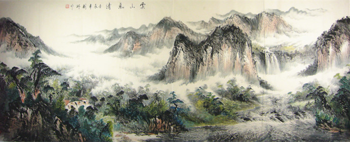 八尺山水国画