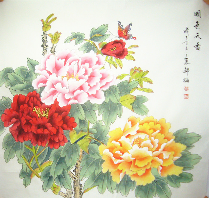 四尺见方工笔画牡丹