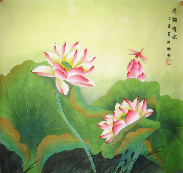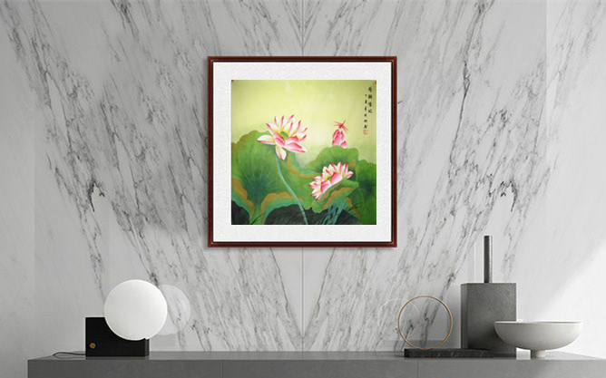 第一字画网的斗方荷花图《荷韵清风》,这幅四尺斗方的写意国画花鸟画装裱后尺寸为0.8米左右,是一幅非常温馨的作品,作品画风细腻、栩栩如生,十分雅致。挂在家里客厅或公司的会客室都是非常不错的选择,亦可用作送礼等场合,如果放在画廊出售,诸葛明科老师此幅工笔斗方荷花图《荷韵清风》的标价在1500元左右。