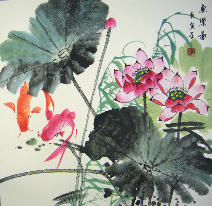 【尺寸】斗方荷花鲤鱼图