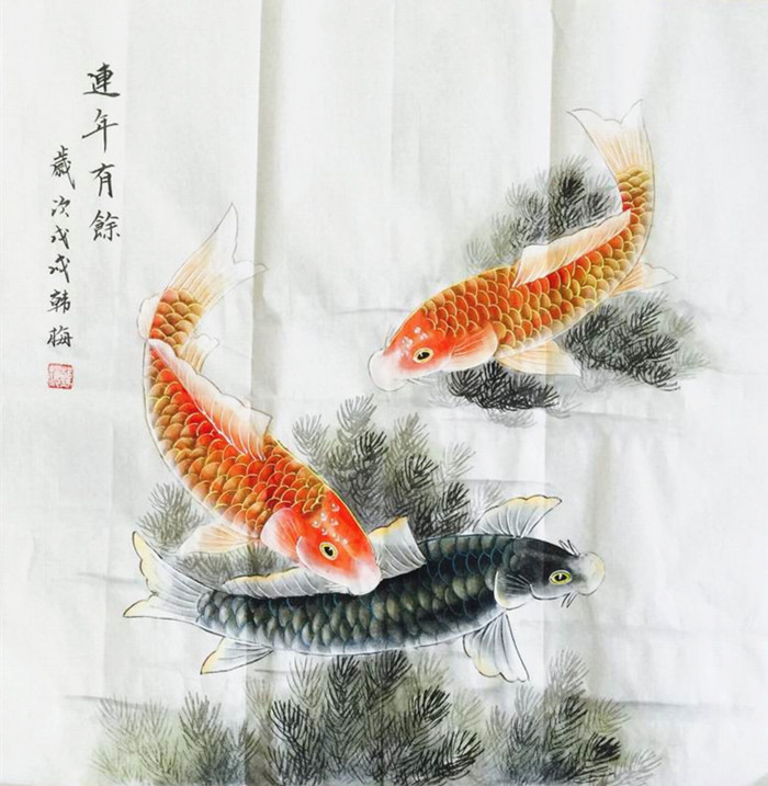 • 产品简介: 玄关斗方锦鲤图,韩梅老师作品。