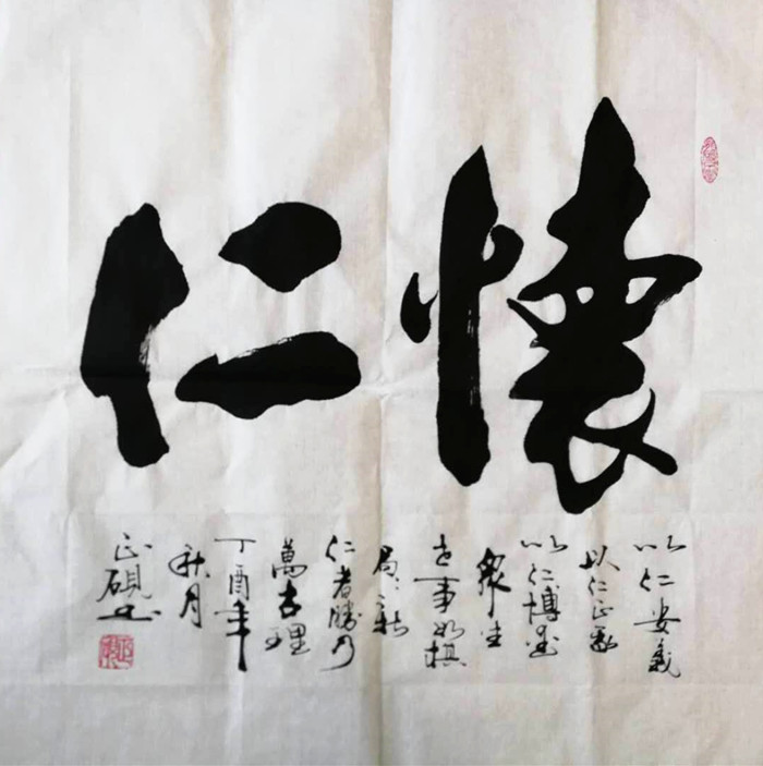 第一字画网的行书书法怀仁,适合挂在书房或是会客室等场合,这幅四尺斗方书法客厅书法行书行书书法怀仁是广西书法家甘正砚老师的作品,用的是四尺斗方仿古特色宣纸,装裱后尺寸约为0.8米见方,作品笔法老练苍劲大气,如果放在画廊出售,甘正砚老师这幅斗方诗词字画客厅书法室雅兰香的价格大约在1200元左右。