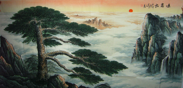 第一字画网的书画迎客松,这幅大八尺的迎客松山水作品若裱完后长度达到2.8米左右,挂在家里客厅或公司大厅、会议室里显得非常的气派,画的上方太阳正冉冉升起,又寓意着旭日东升、鸿运当头,整幅作品气势磅礴、效果上佳,如果放在画廊出售,咏茗老师此幅书画迎客松标价在4000元左右。