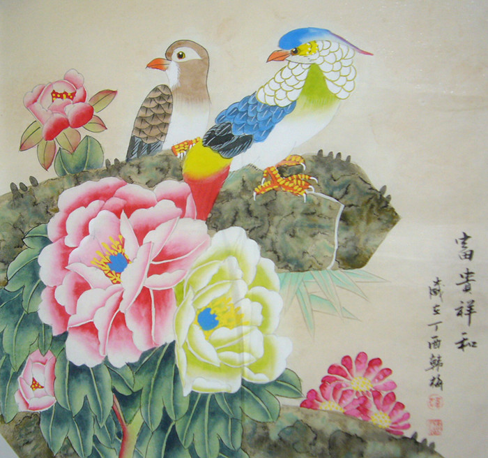 • 产品简介: 国画牡丹花鸟画,齐鲁名家韩梅老师作品。
