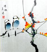 韩梅,1966年生于山东济南,1988年毕业于山东美术学院国画专业,1990年中央美院进修,现为山东美协会员。中青年画家韩梅擅长花鸟画的艺术创作,曾受美术大师黄永玉先生指点。作品数次参加国内大型美术展览,另有多幅作品发表于《齐鲁晚报》等报纸刊物。2003年元月在山东省青岛市文化馆成功举办首次个人画展,作品大部被藏家收藏。