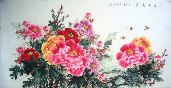 第一字画网的六尺富贵牡丹图,六尺牡丹作品裱完后尺寸近2.2米,牡丹寓意着富贵吉祥,作品上又写着花开富贵四个字,是一幅性价比不错的六尺作品,如果放在画廊出售,美琦老师此副六尺富贵牡丹图裱完后的标价在1600元左右。