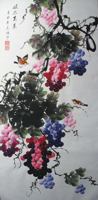 • 产品简介: 国画葡萄图《硕果累累》,王美琦老师作品。