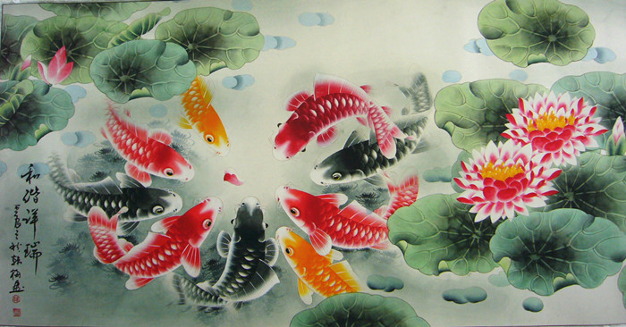 第一字画网的国画精品九鱼图,这幅四尺的工笔画九鱼图装裱后长1.8米左右,是一幅非常有灵气的作品,九鱼图寓意长长久久、连年有余,作品题字为花开有余、富贵呈祥,点出了这幅作品的主题,挂在家里餐厅或客厅都是不错的选择,作品立意清新,构图巧妙,用笔简练,刻画得惟妙惟肖,匠心独具。如果放在画廊出售,韩梅老师此幅国画精品九鱼图的标价在2500元左右。