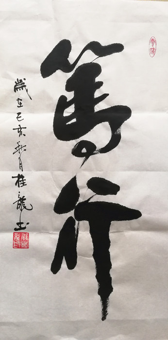 竖幅字画作品装裱成轴的效果(方便直接悬挂)