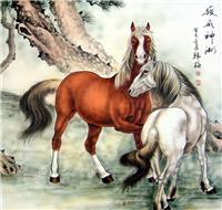 第一字画网的工笔画八骏图,作品画法精妙,栩栩如生,是难得一见的工笔画八骏图,作品的题字为马到成功,将一幅雪中奔马的景象生动的展现在作品画面上,如果放在画廊出售,汪艺新老师此副四尺工笔画八骏图裱完后的标价在1800元左右。