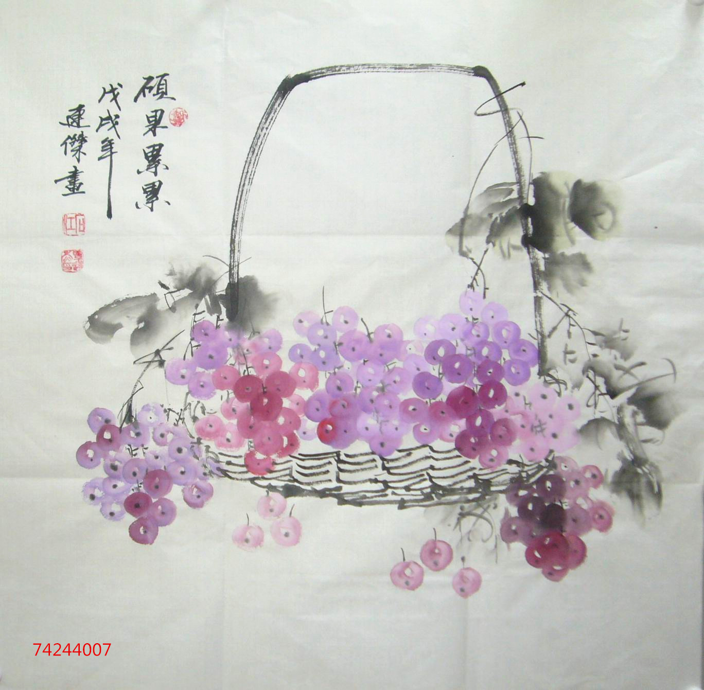 • 产品简介: 国画葡萄作品,老画家覃连杰四尺斗方作品,未装裱。
