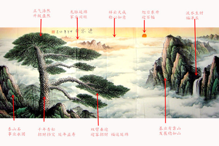 第一字画网的书画迎客松,这幅小八尺的迎客松山水作品若裱完后长度达到2.8米左右,挂在家里客厅或公司大厅、会议室里显得非常的气派,画的上方太阳正冉冉升起,又寓意着旭日东升、鸿运当头,整幅作品气势磅礴、效果上佳,如果放在画廊出售,咏茗老师此幅书画迎客松标价在3000元左右。