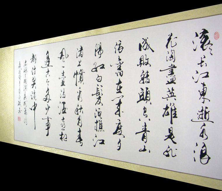第一字画网的书法三国演义开篇词,是四尺的书法,正砚老师这幅书法非常适合挂在客厅或公司的办公室,气派非凡,装裱后尺寸达到1.8米长,作品笔法老练,苍劲有力,如果放在画廊出售,广西书法家甘正砚老师这幅四尺书法三国演义开篇词的标价在1800元左右。