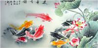 九鱼荷花国画