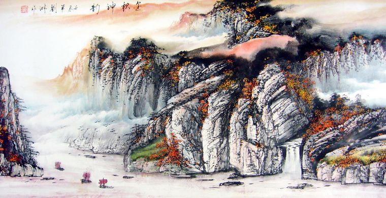 第一字画网的中国写意山水,已完成装裱。这是一幅很有意境的山水作品,作品山水交汇、意境深动,是幅水准不错的作品,适合挂在家里的客厅、或是挂在公司的办公室,如果放在画廊出售,刘淋老师此幅四尺国画写意山水的标价在2500元左右。